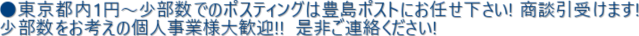 ●東京都内1円〜少部数でのポスティングは豊島ポストにお任せ下さい! 商談引受けます!