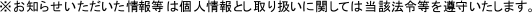 ※お知らせいただいた情報等は個人情報とし取り扱いに関しては当該法令等を遵守いたします。